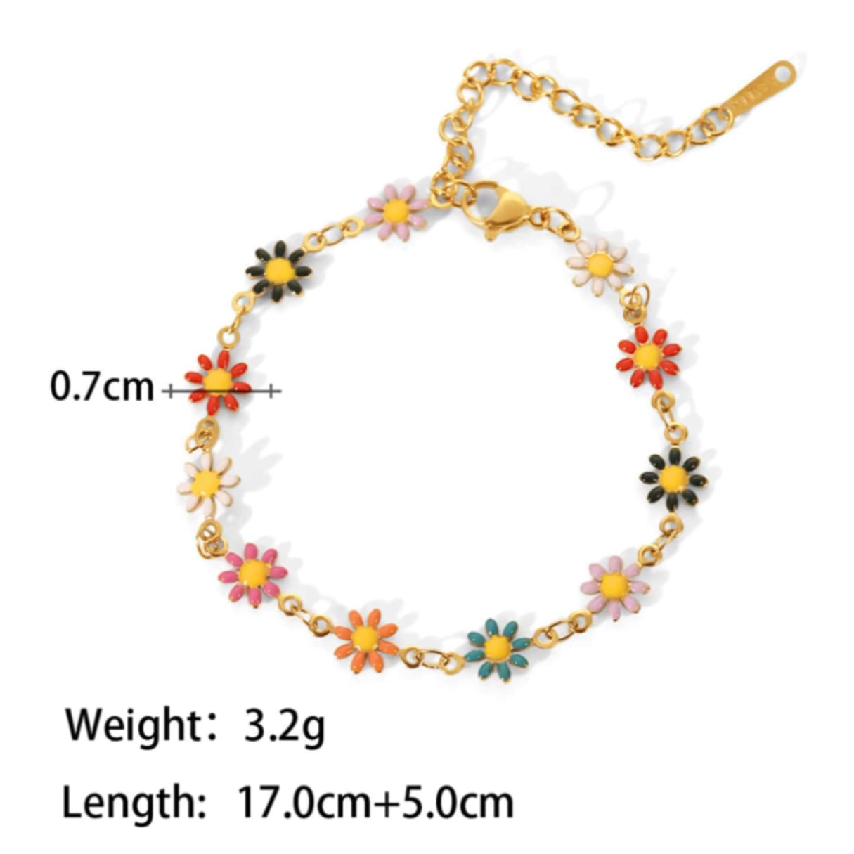 كمية سوار يد زهور ربيعية من الستانلس المطلي بالذهب عيار 18