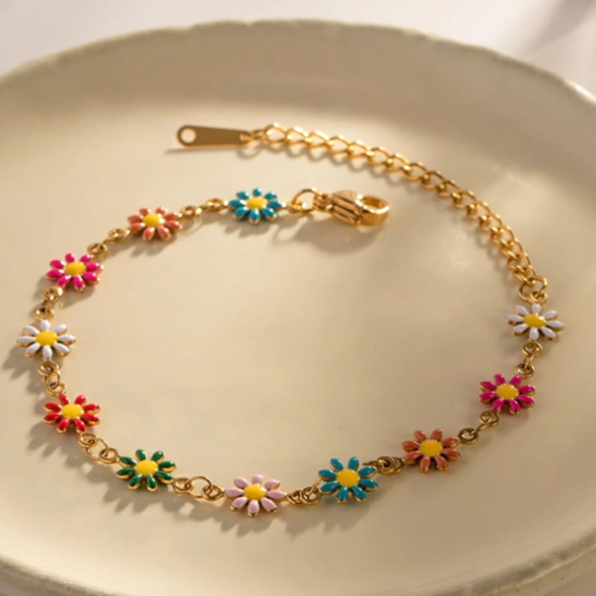 سوار يد زهور ربيعية من الستانلس المطلي بالذهب عيار 18