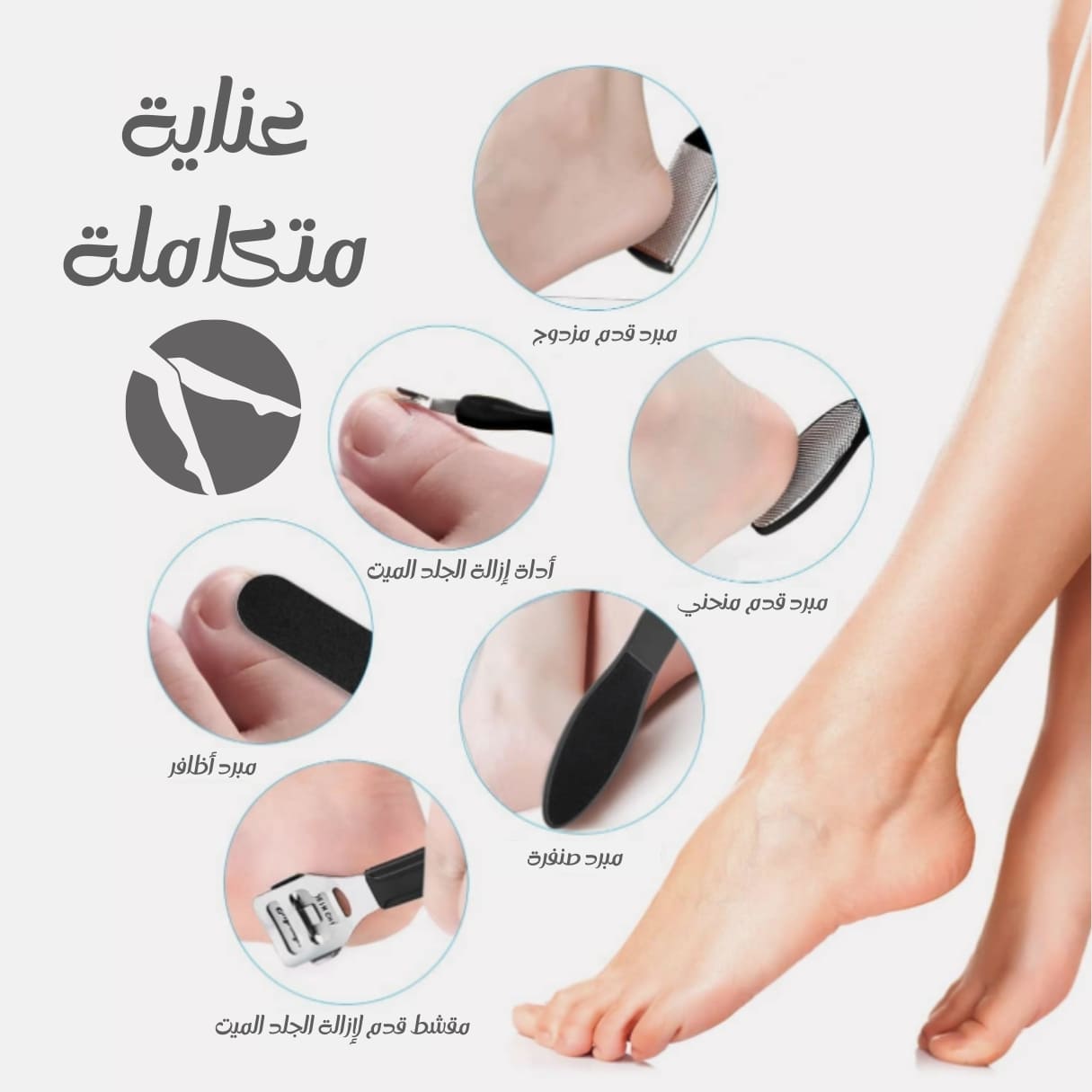 هل تبحثين عن طريقة سهلة وفعالة للحفاظ على نعومة قدميكِ دون الحاجة للذهاب إلى صالون التجميل؟ هل تعانين من الجلد الميت أو المسامير في القدم وتحتاجين لحل عملي وآمن؟ هذا الطقم المتكامل هو كل ما تحتاجين للحصول على عناية مثالية في منزلك، متى شئتِ.