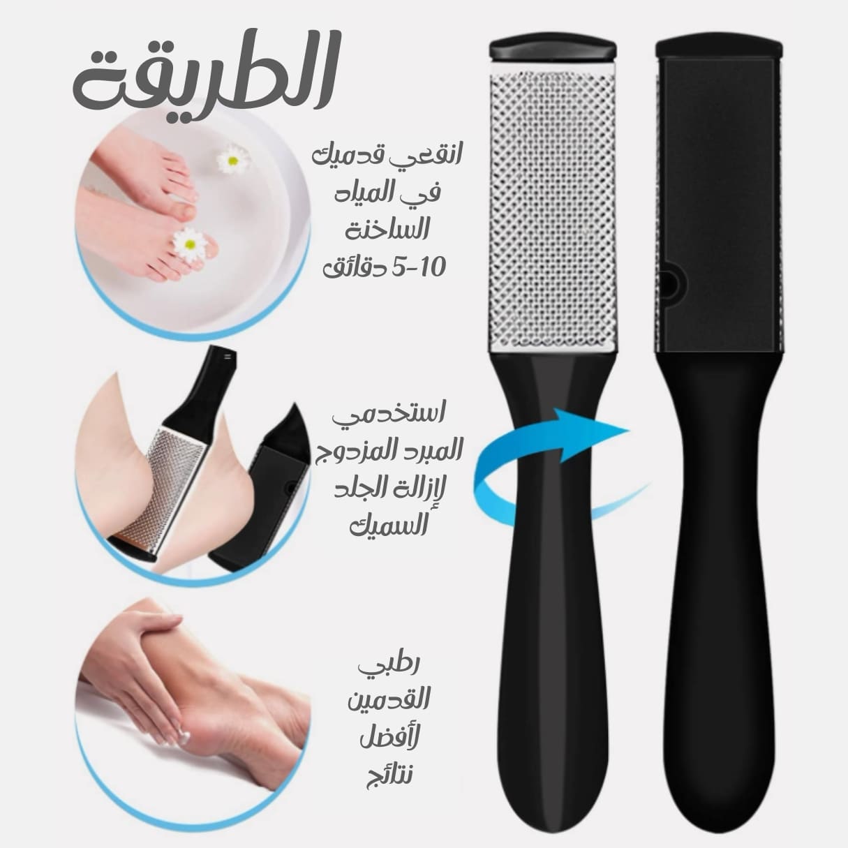 💡 بونص: بعد استخدام الأدوات، اغسلي قدميكِ بالماء الدافئ وجففيهما، ثم ضعي كريم ترطيب… وستشعرين أن قدميكِ ولدتا من جديد!
