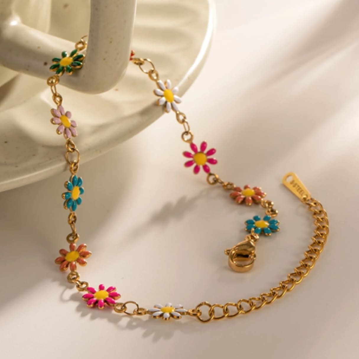 حينما تختارين إطلالتك، كل تفصيلة صغيرة تعتبر انعكاسًا لذوقكِ وأناقتكِ. هذا الخلخال المُزيّن بزهور ملونة دقيقة هو اللمسة النهائية التي تُكمّل مظهركِ الصيفي أو المناسبات الخاصّة، ليمنح قدميكِ جاذبيّة مميزة تلفت الأنظار.