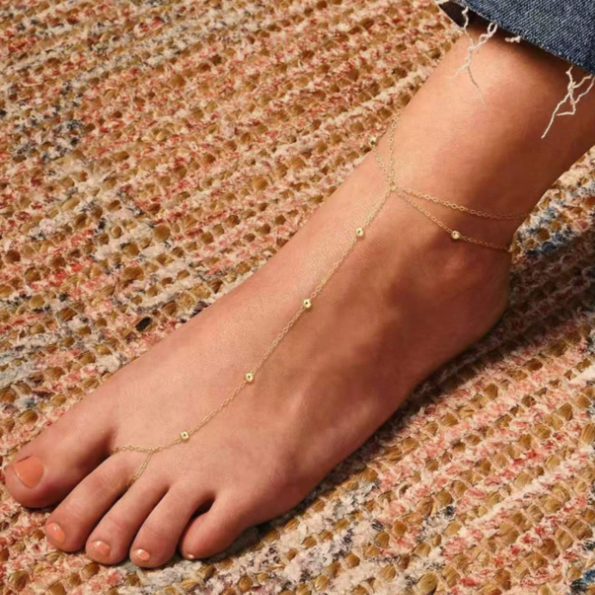 سلسة قدم مطلية بالذهب عيار 18 قيراط تضيف لمسة فريدة من الفخامة والجمال لإطلالتك.