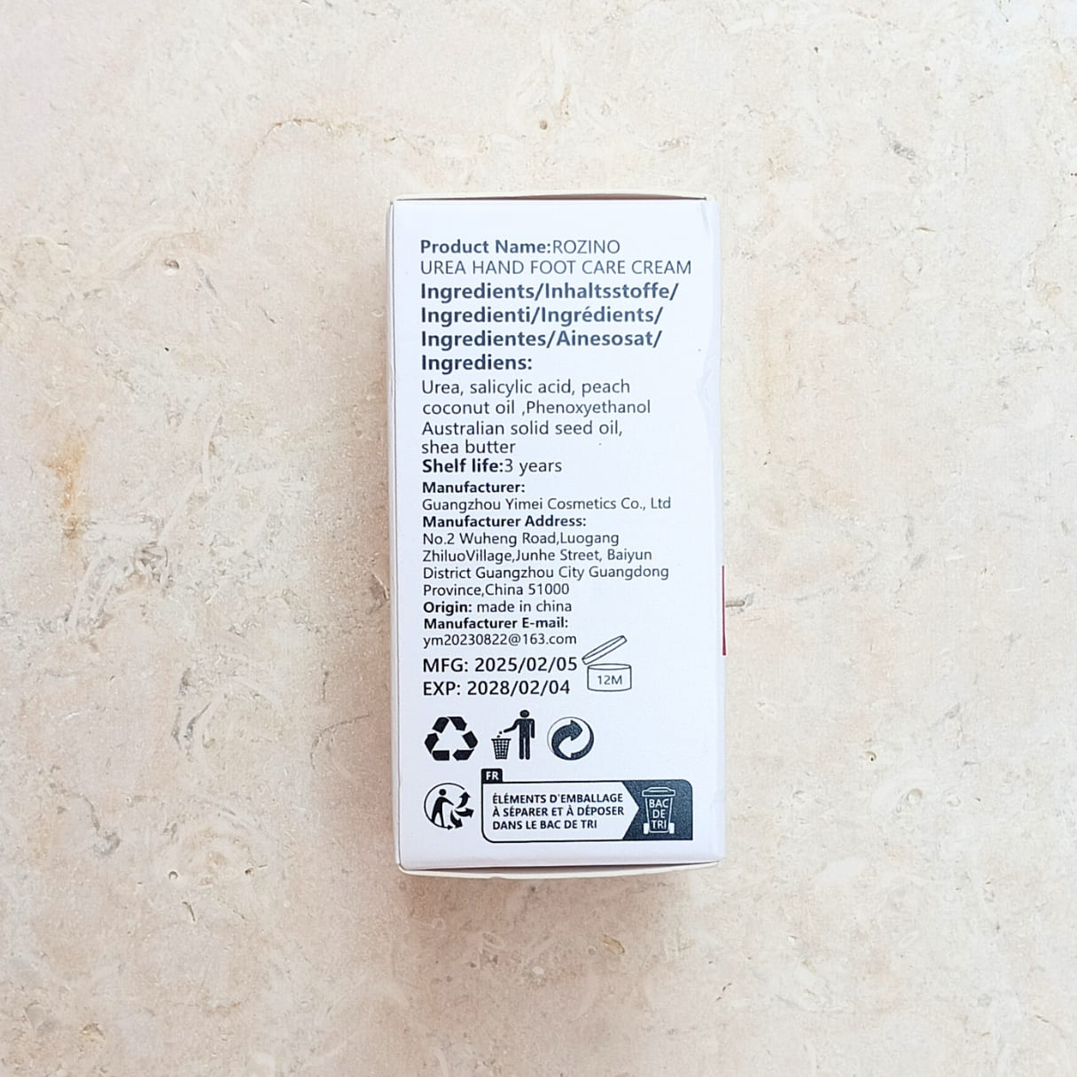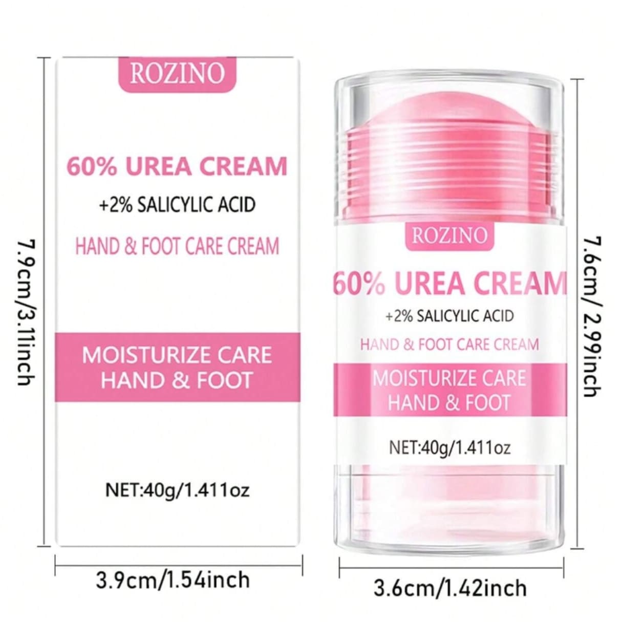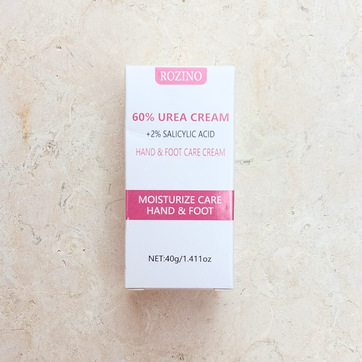 - اليوريا 60٪: من أقوى المكونات المرطبة التي تعمل على جذب الرطوبة من الهواء وإبقائها في الجلد. تساعد على تليين الطبقة الخارجية الخشنة والمتشققة، مما يسهّل إزالة الجلد الميت.